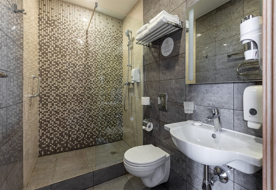 с душем, туалетные принадлежности, фен