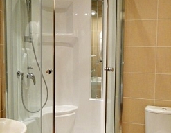 душевая кабина,туалет,умывальник,косметический набор,фен,халат