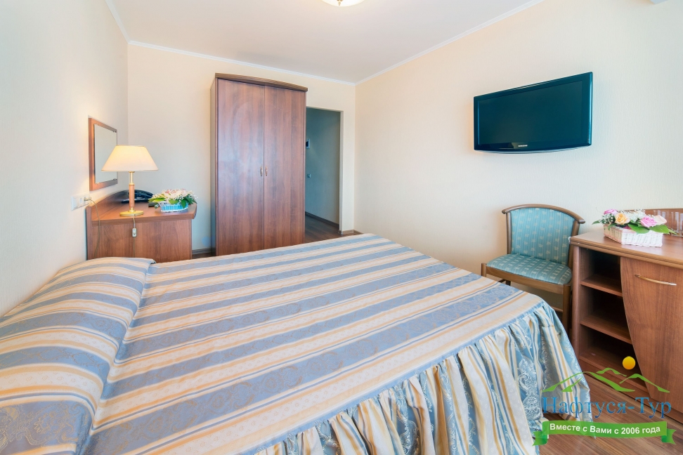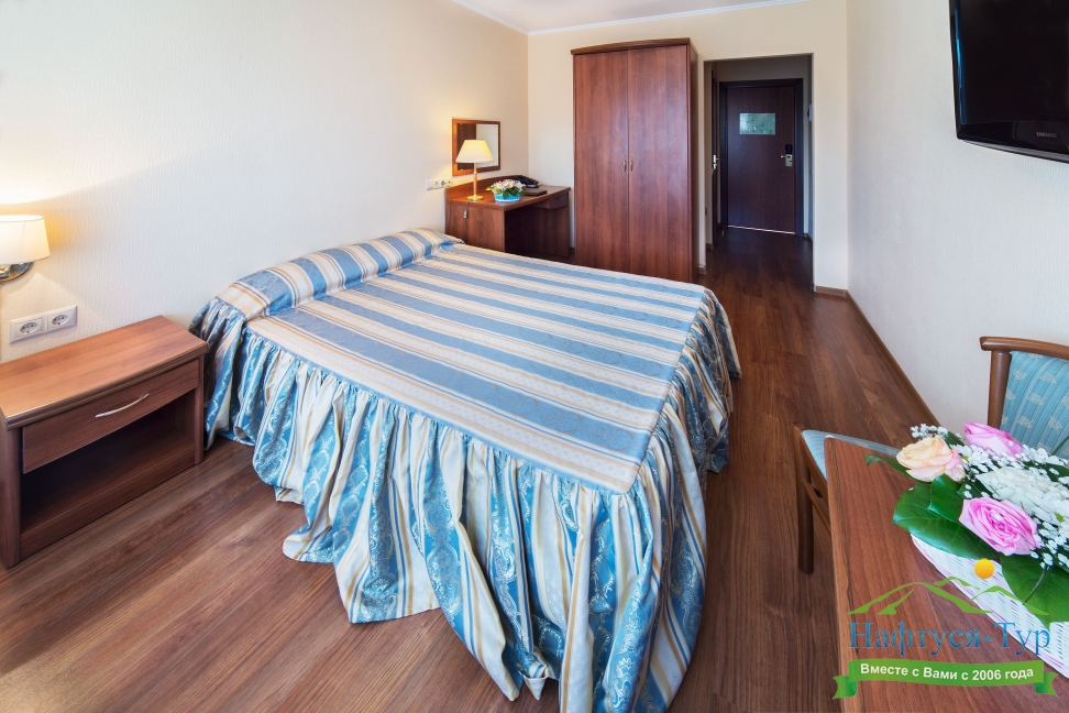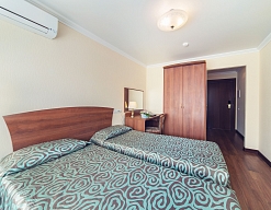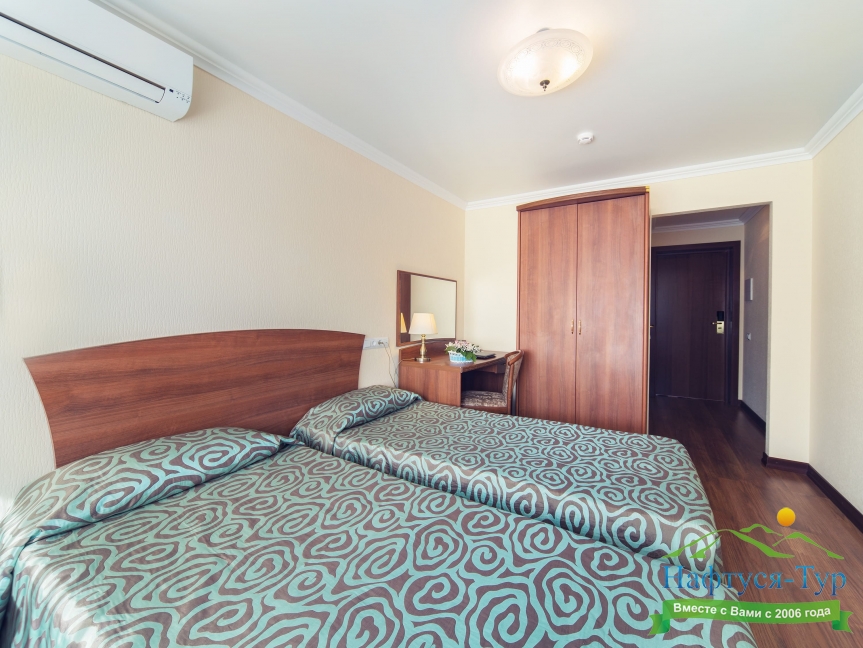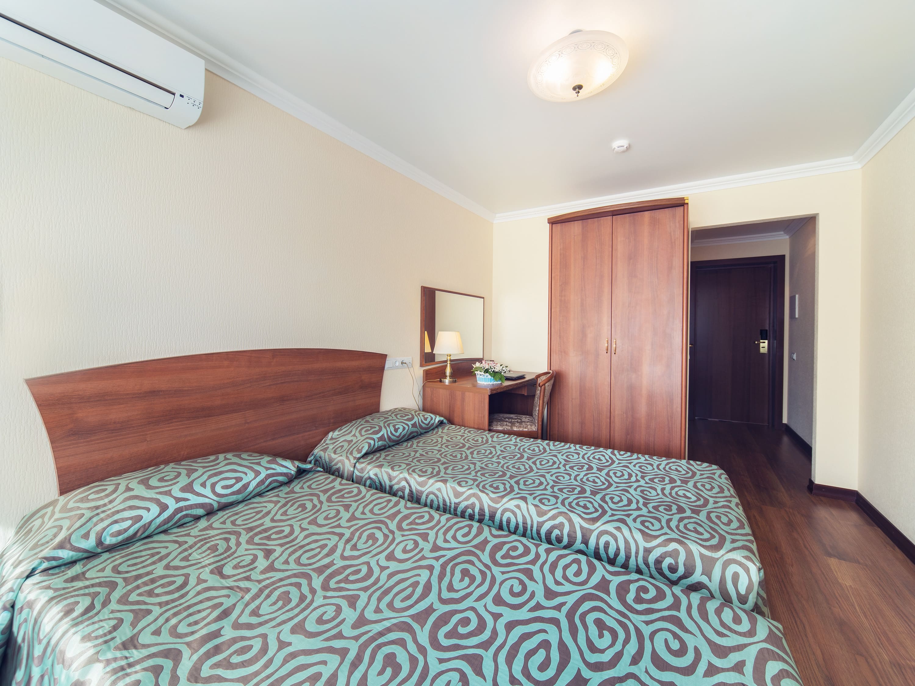 кровати односпальные /одна двуспальная кровать, прикроватные тумбочки, стол, стул, шкаф