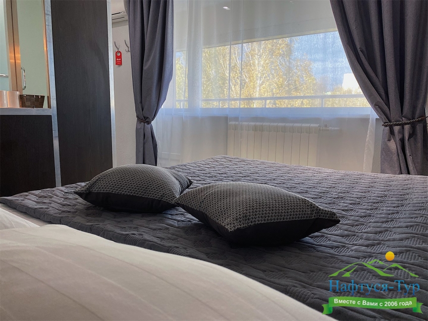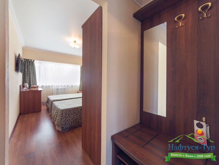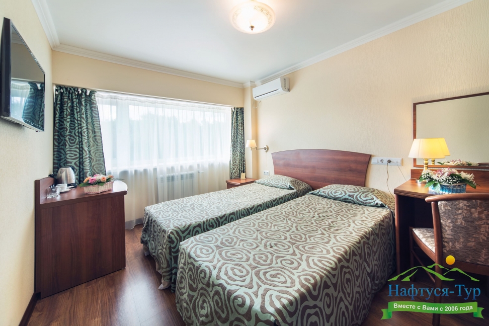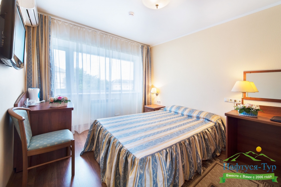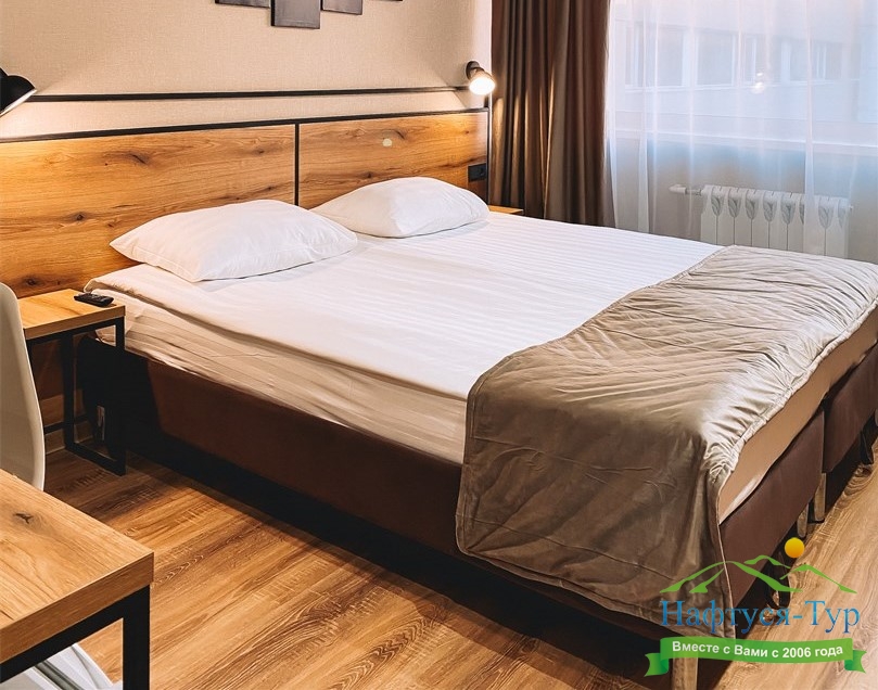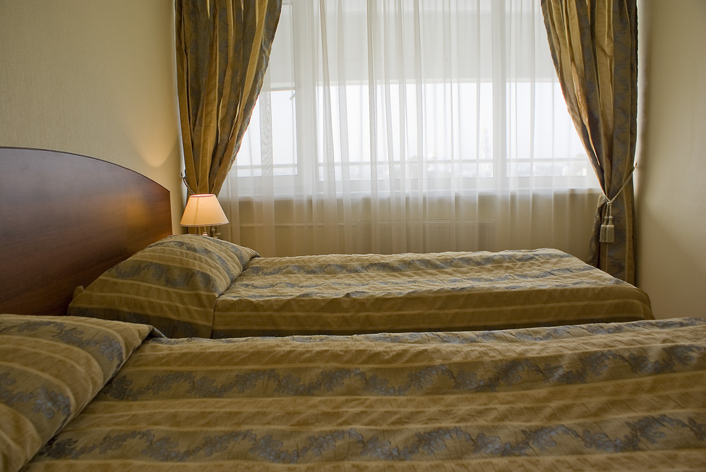кровати односпальные /одна двуспальная кровать, прикроватные тумбочки, стол, стул, шкаф