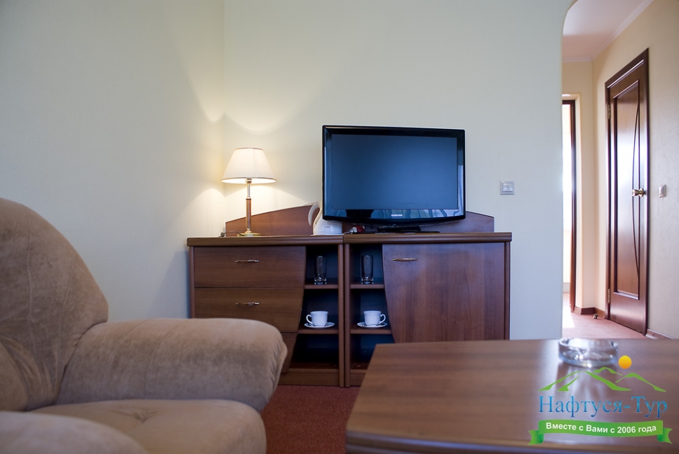 кондиционер, мини-холодильник, телевизор, телефон, чайный набор посуды, электрочайник