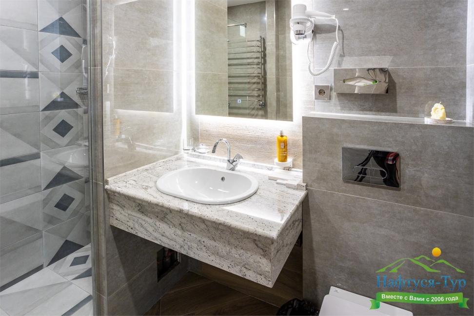 с душем, туалетные принадлежности, фен