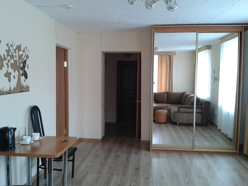 вешалка, диван раскладной, зеркало, кровать двуспальная, прикроватные тумбочки, стол, стулья, шкаф