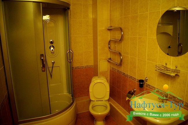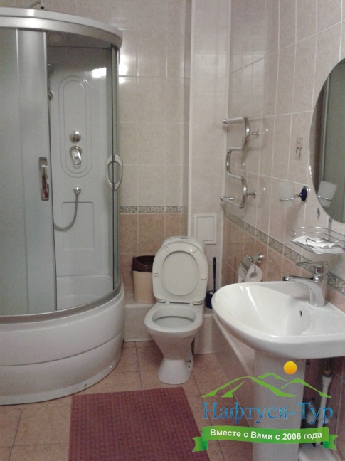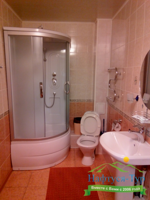 с душевой кабиной, туалетные принадлежности
