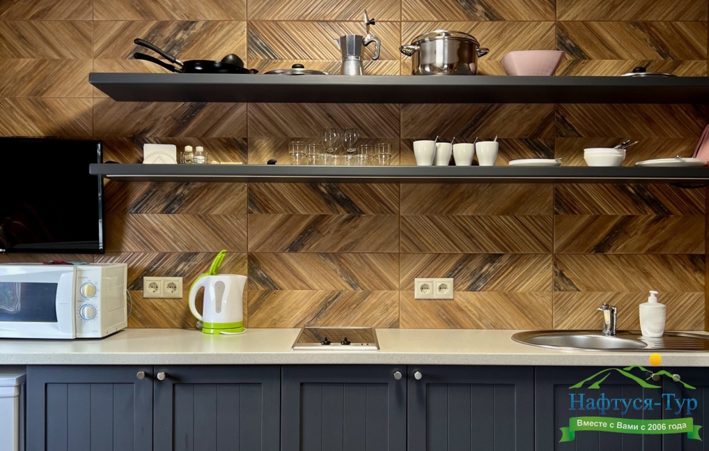 микроволновая печь, набор посуды, телевизор ЖК, телефон, холодильник, электрическая плита, электрочайник
