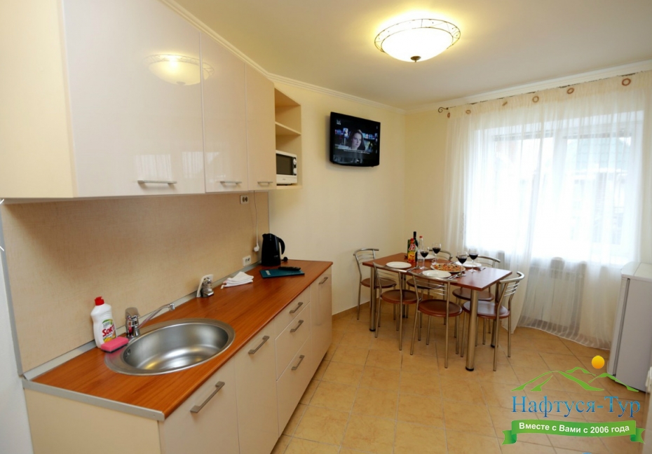микроволновая печь, набор посуды, система общего кондиционирования, телевизор ЖК, холодильник, чайный набор посуды, электрочайник