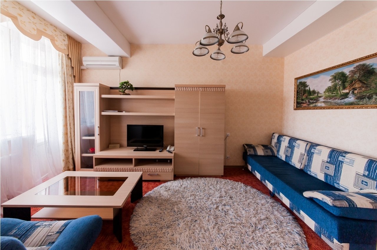 диван раскладной, кровать двуспальная, прикроватные тумбочки, столик журнальный, столик туалетный, стулья, шкаф-купе