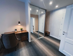 вешалка, гардеробная, диван раскладной, зеркало, кресла, кровать двуспальная, стол, тумба, шкаф, шкаф-купе