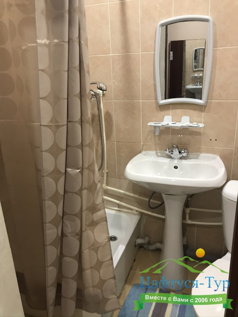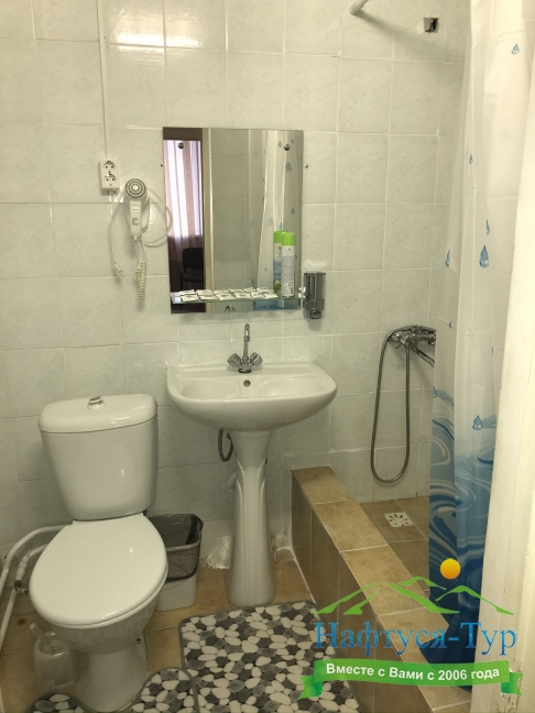 с душем на блок, туалетные принадлежности