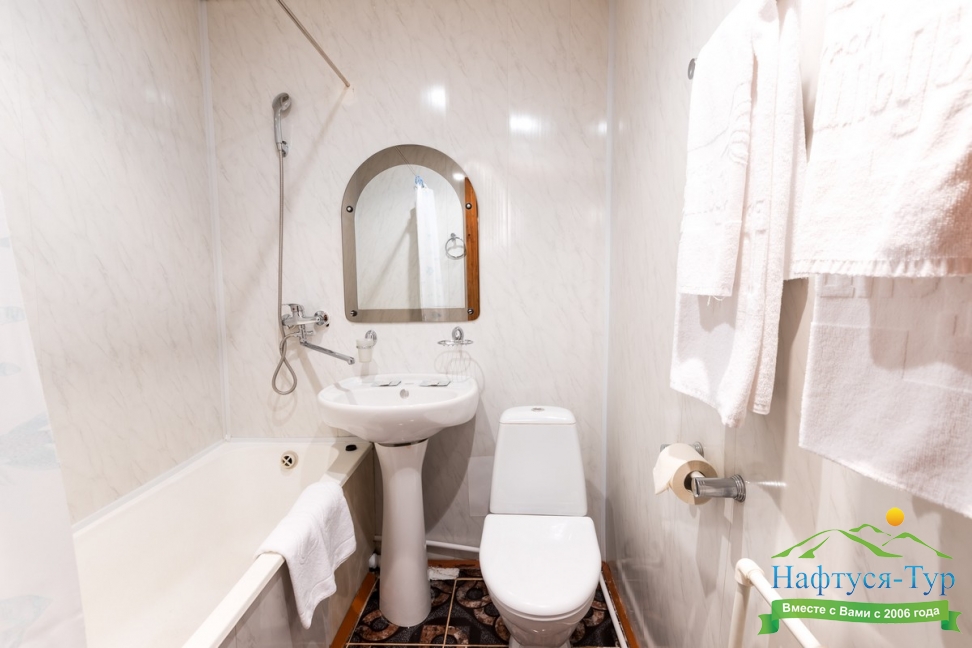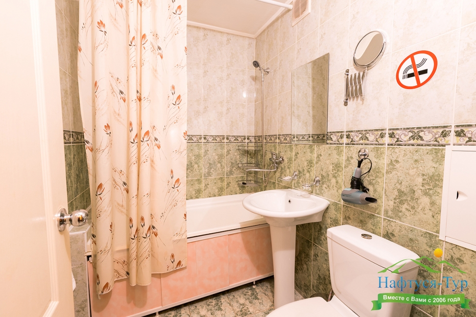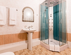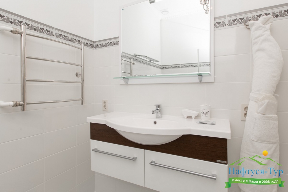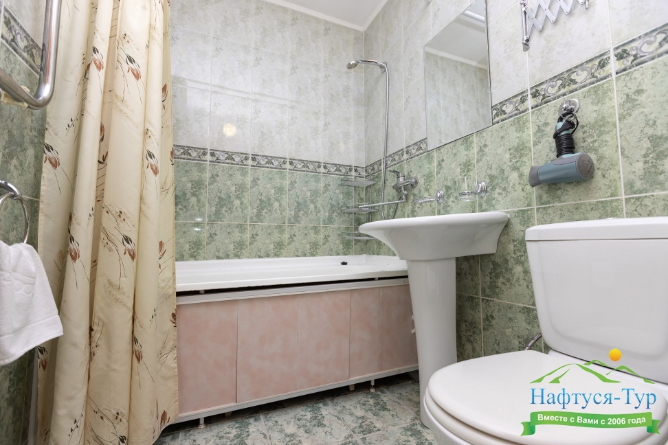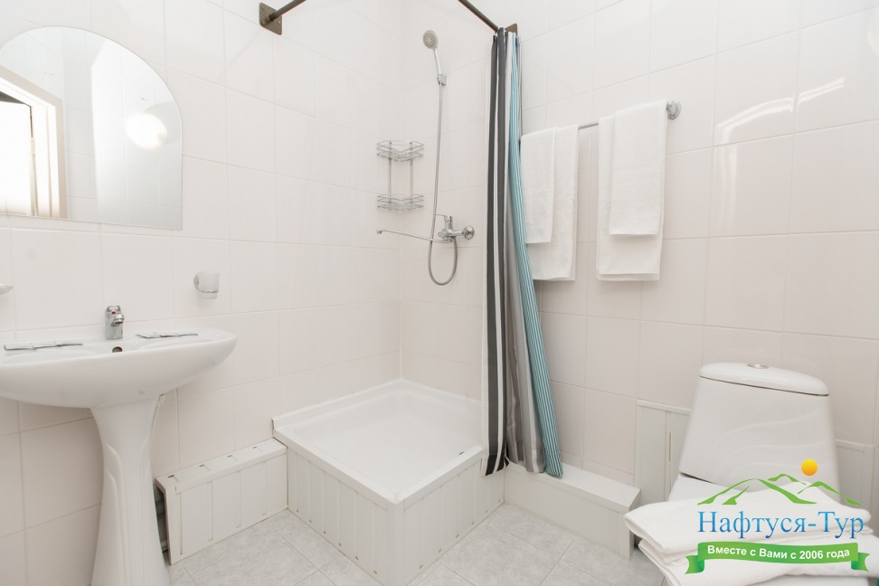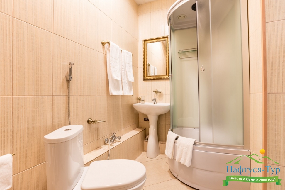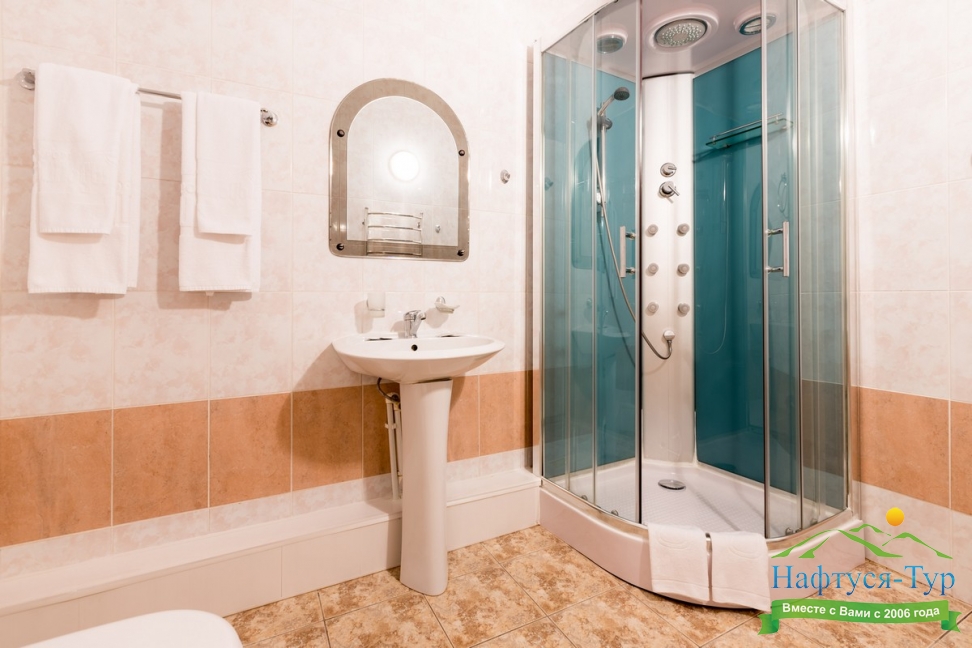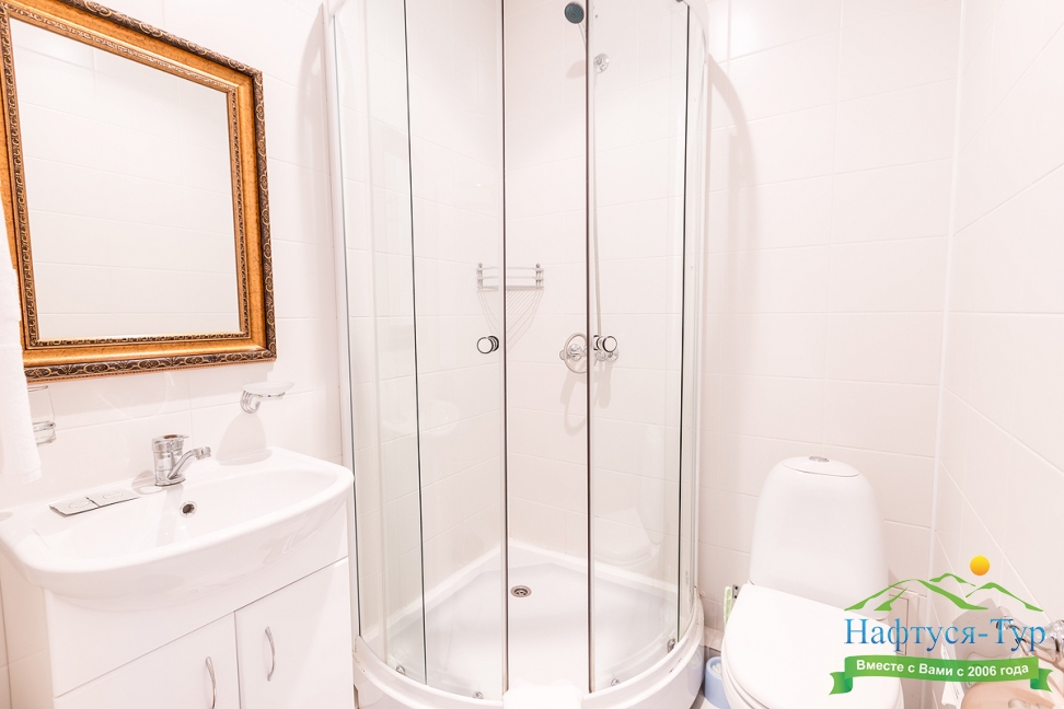 2 санузла, с душевой кабиной, тапочки, туалетные принадлежности, фен, халат