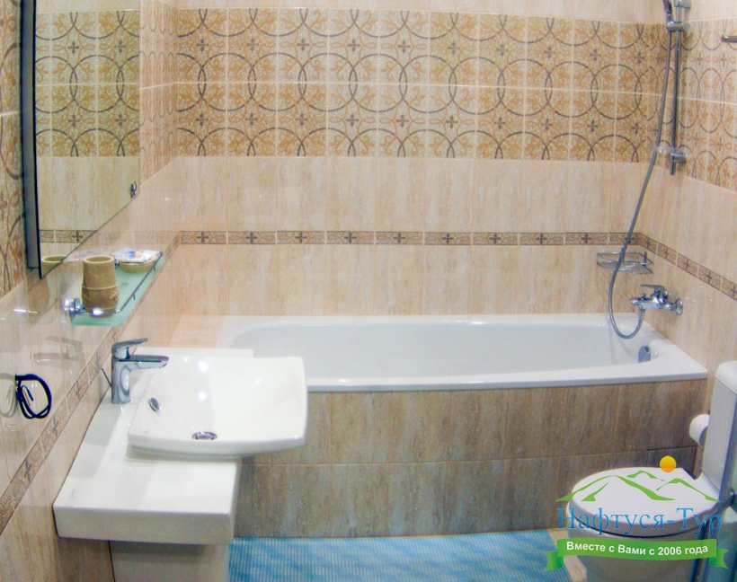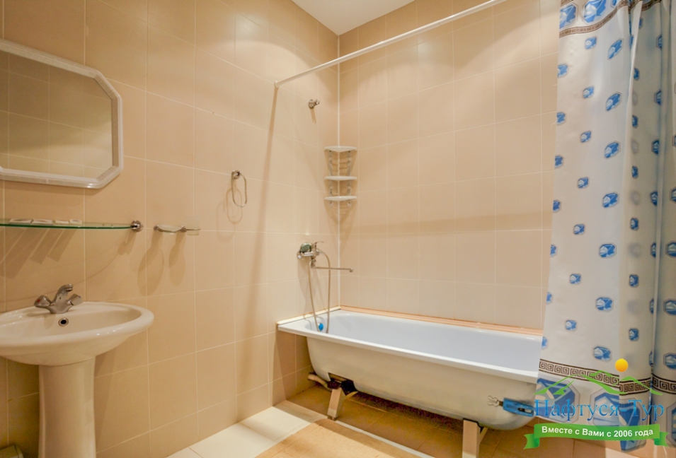 с душем (поддон), туалетные принадлежности