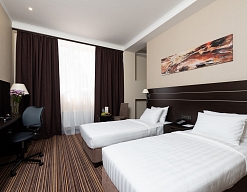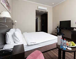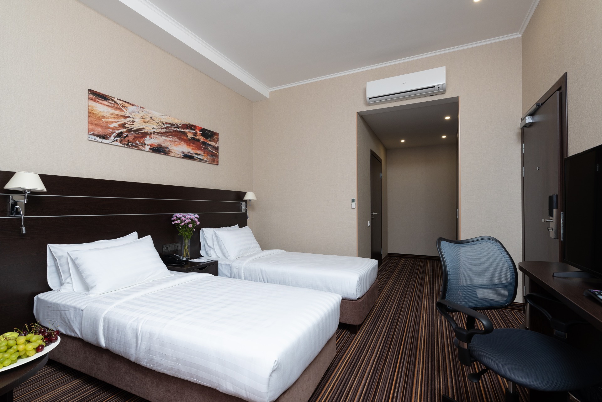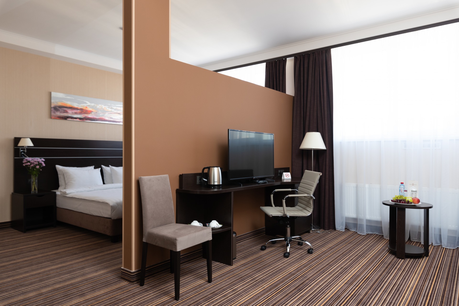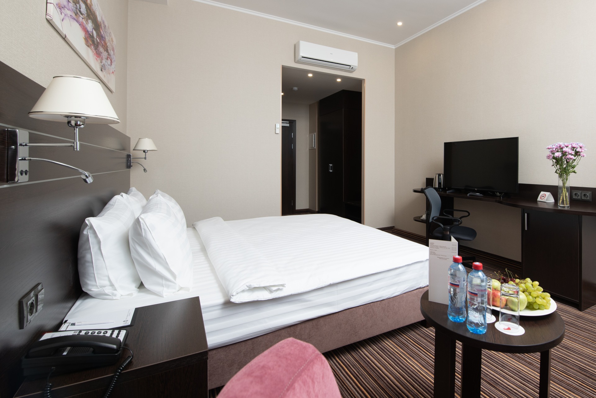 Постояльцев по утрам ожидают завтраки по системе «шведский стол». В отеле работают ресторан, фитнес-зал, есть охраняемая парковка возле корпуса и оборудованный конференц-зал, рассчитанный на сорок человек. Гостям доступны услуги прачечной, сеть wi-fi, прокат бытовой техники.