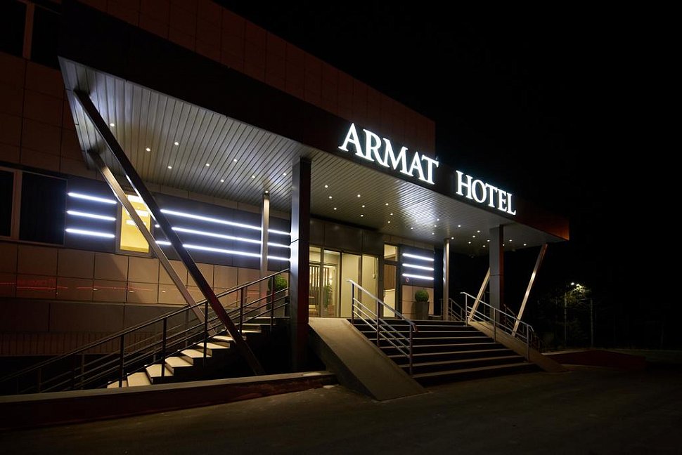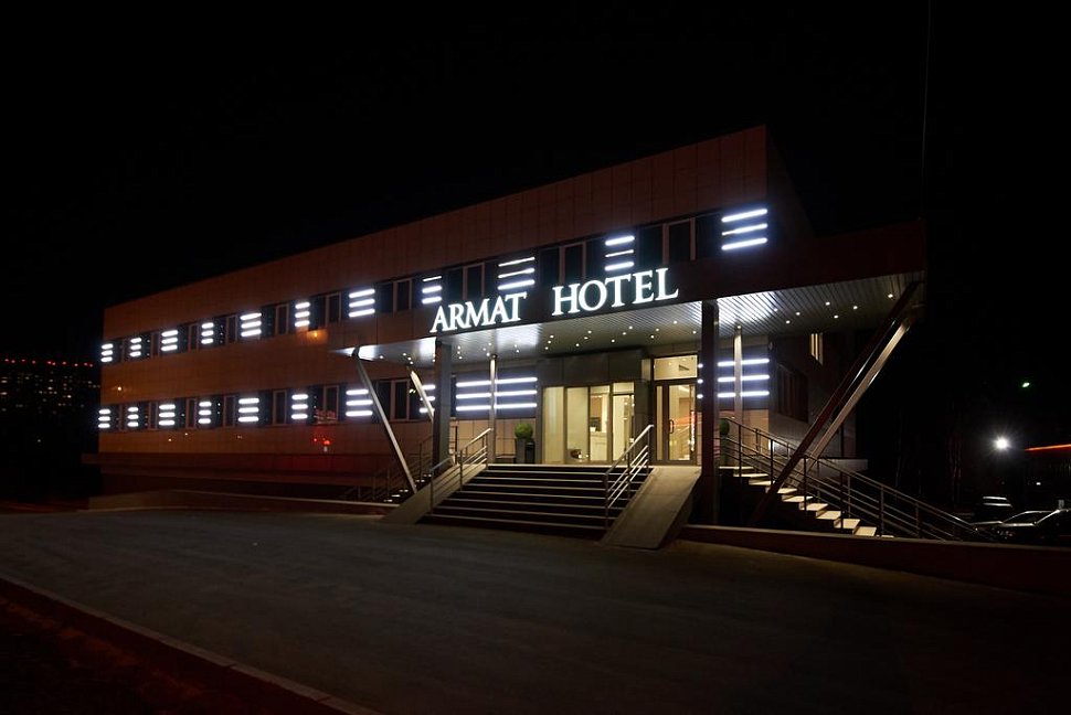 Отель «Армат» расположен в городе Иркутске в районе «Октябрьский округ», в полутора километрах от международного аэропорта. В шаговой доступности – остановки общественного транспорта, магазины. В пяти минутах езды находится один из самых известных музеев города – «Ледокол Ангара», дорога до центра города займет не более пятнадцати минут.