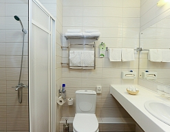 биде, с душем, тапочки, туалетные принадлежности, фен, халат