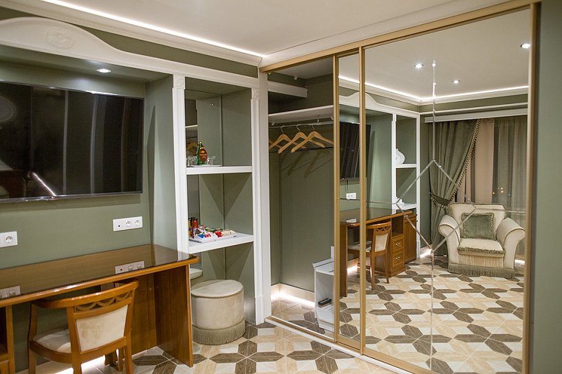 кондиционер, сейф, телевизор ЖК, телефон, чайная станция, чайный набор посуды