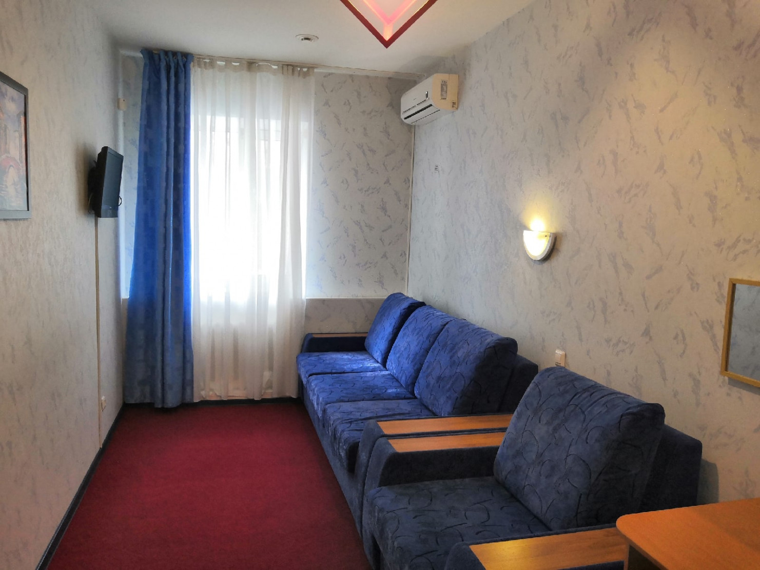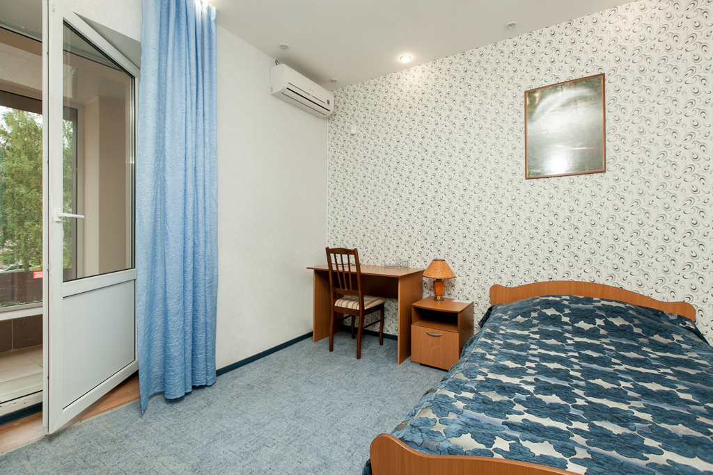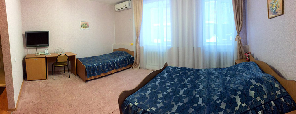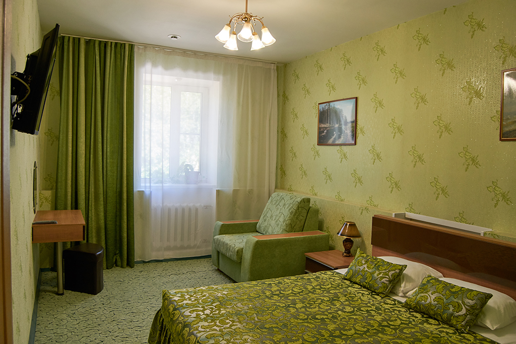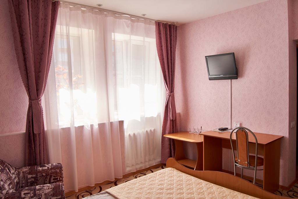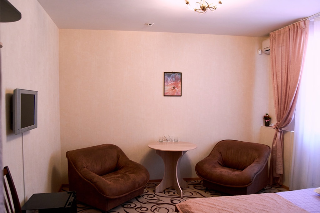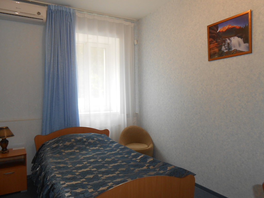 Трехэтажное здание гостиницы находится на пересечении улицы Молодой Гвардии и Стального переулка. Гостей ожидают номера разной категории — от Стандартного одноместного номера до апартаментов с джакузи. Номера хорошо меблированы, на кроватях — ортопедические матрацы, в комнатах есть телевизор, мини-холодильник, кондиционер, фен, подключена сеть wi-fi. В некоторых номерах имеются балконы.