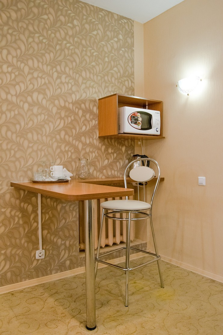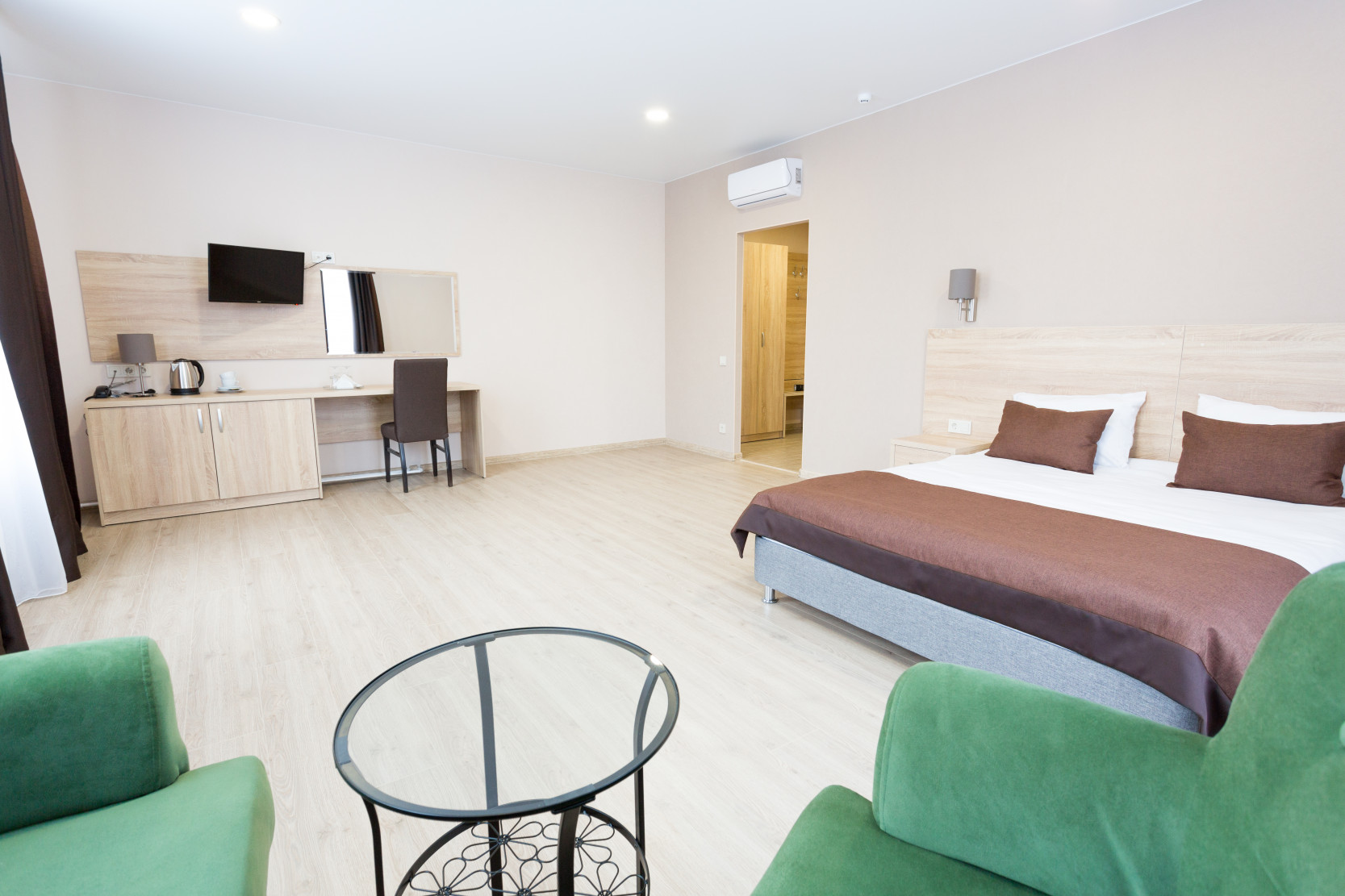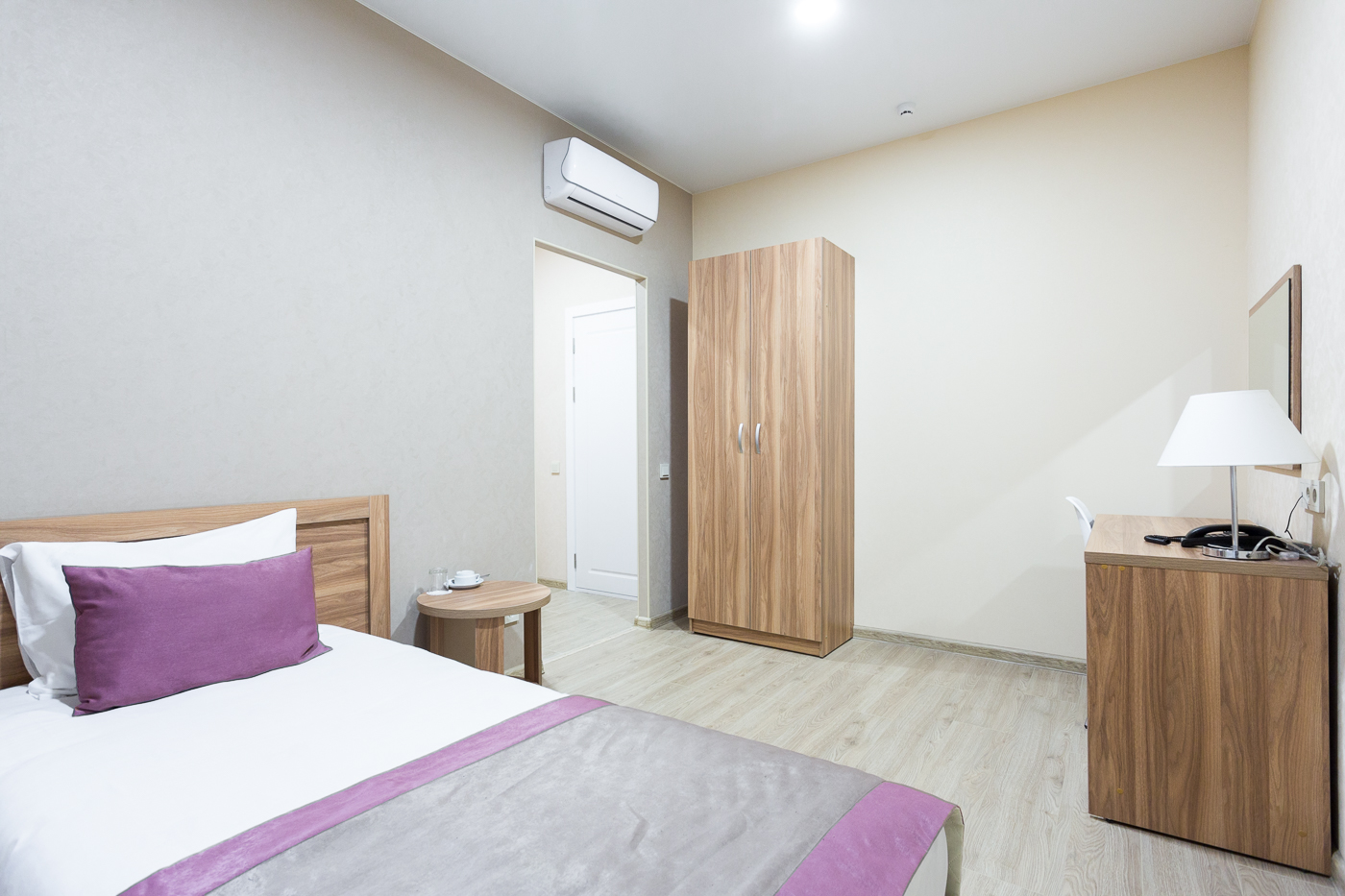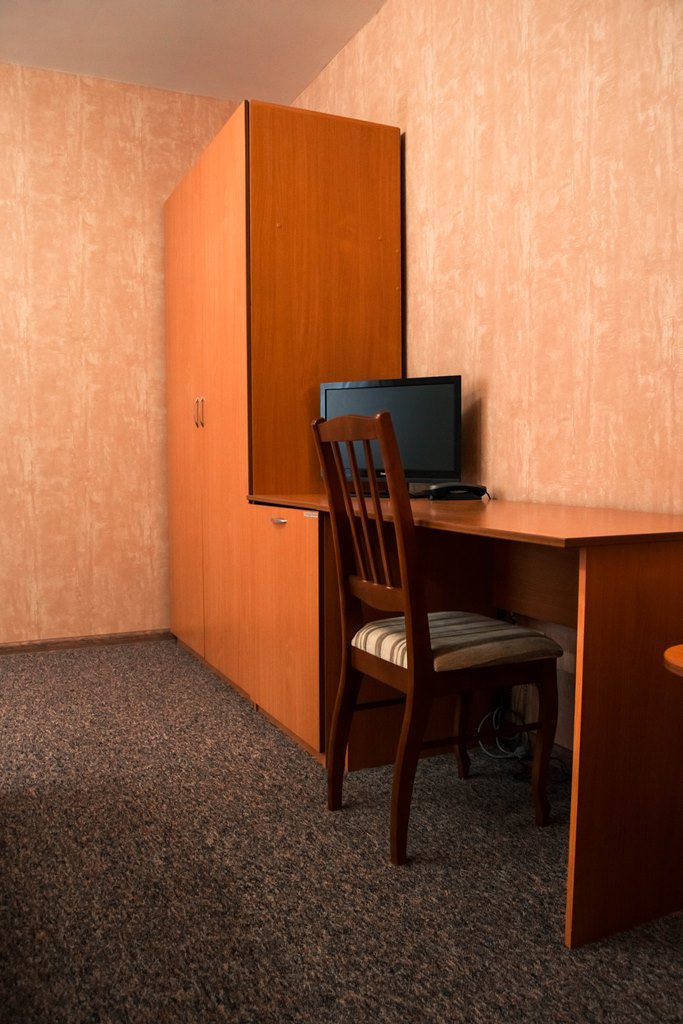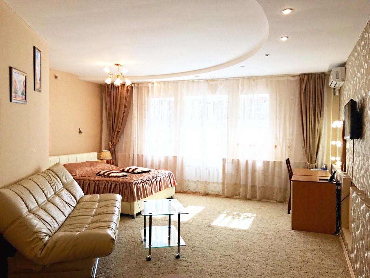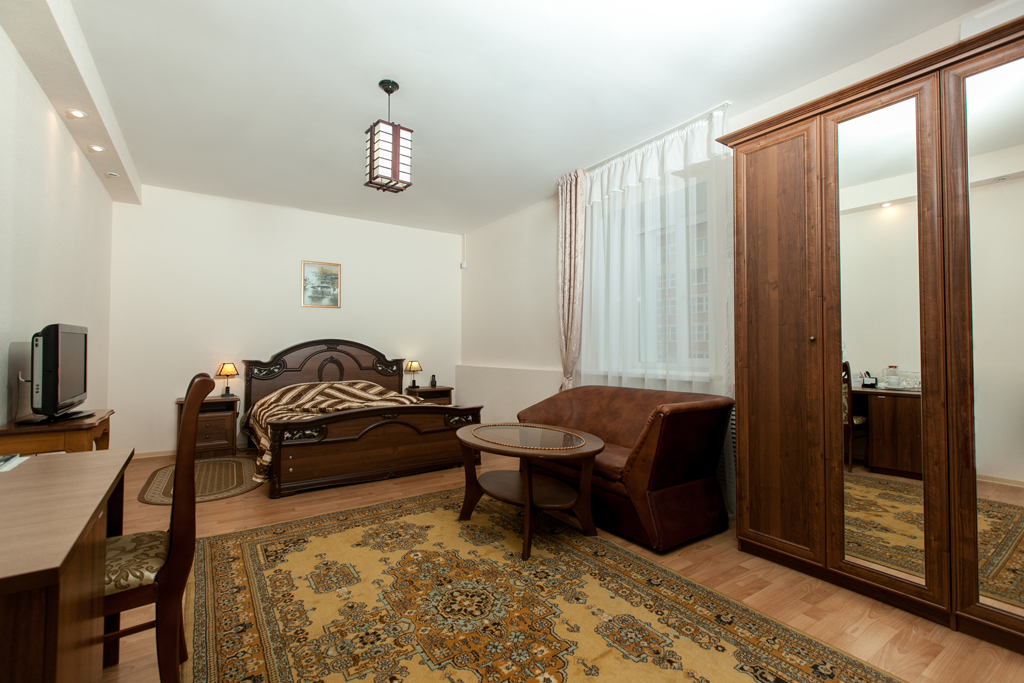 Трехэтажное здание гостиницы находится на пересечении улицы Молодой Гвардии и Стального переулка. Гостей ожидают номера разной категории — от Стандартного одноместного номера до апартаментов с джакузи. Номера хорошо меблированы, на кроватях — ортопедические матрацы, в комнатах есть телевизор, мини-холодильник, кондиционер, фен, подключена сеть wi-fi. В некоторых номерах имеются балконы.