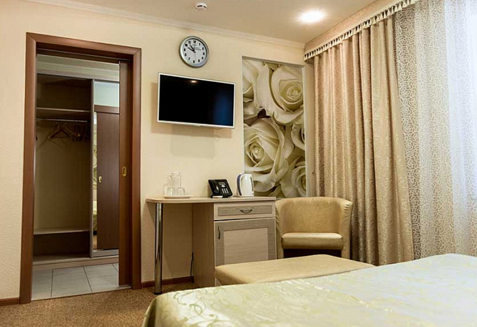 смена постельного белья (раз в 5 дней) , уборка номера (по требованию)