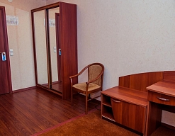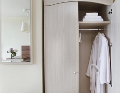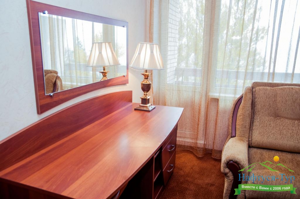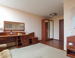 зеркало, кровати односпальные /одна двуспальная кровать, прикроватные тумбочки, стол, стул, шкаф