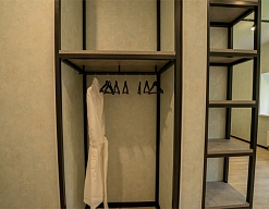 вешалка, зеркало, кровать двуспальная, прикроватные тумбочки, шкаф