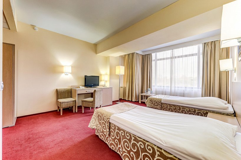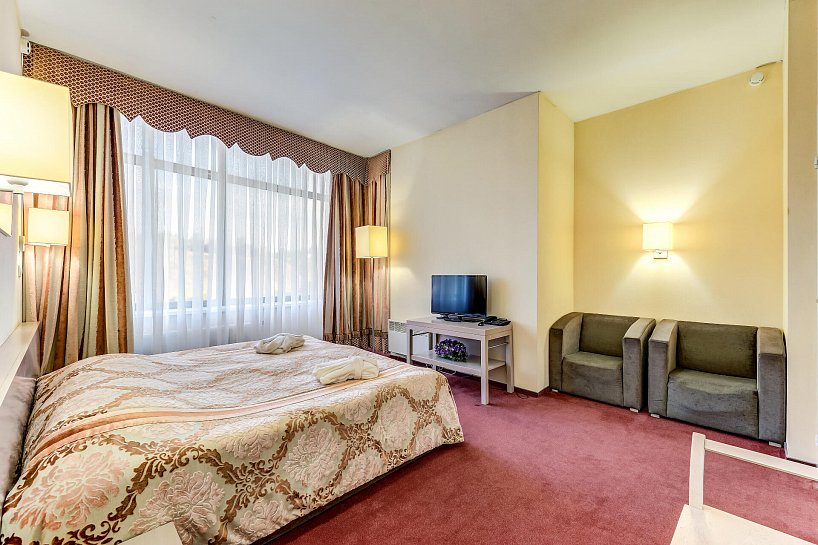 Номерной фонд отеля представлен номерами класса «Люкс», «Стандарт», «Студио». 2-х и 3-х местные номера оснащаются кондиционерами, телевизорами, по желанию постояльца в номере может быть компьютер, техника подключается к сети интернет. При желании можно выбрать номер с видом на Москва-реку. Санузел с душем или ванной дополняется феном и туалетными принадлежностями. Room-service в номерах обеспечивается круглосуточно. В стоимость проживания гостинице входит завтрак – он подаётся виде «шведского стола», что касается полноценного питания, то его можно получить за дополнительную плату – в гостиничном ресторане с русской и европейской кухней имеется 110 мест. Также можно воспользоваться услугами лобби-бара, который также рассчитан на 110 мест.