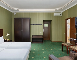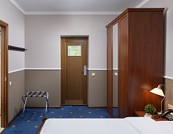 вешалка, зеркало, кровати односпальные /одна двуспальная кровать, набор мягкой мебели, прикроватные тумбочки, стол, стулья, тумба багажная, шкаф