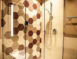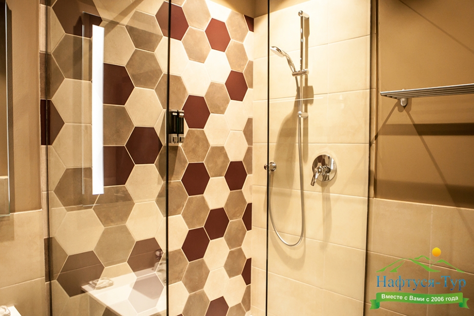 с душевой кабиной, туалетные принадлежности