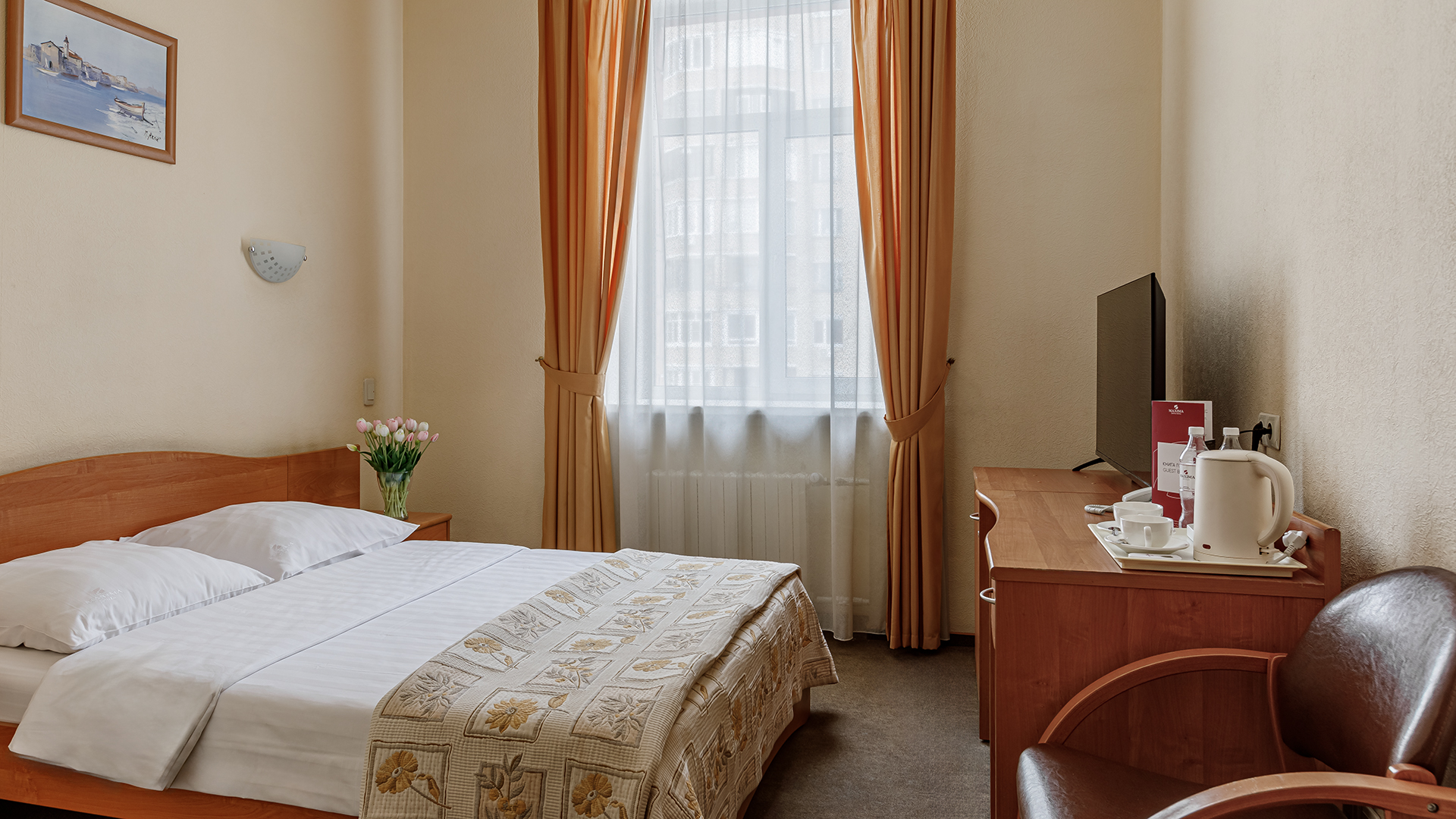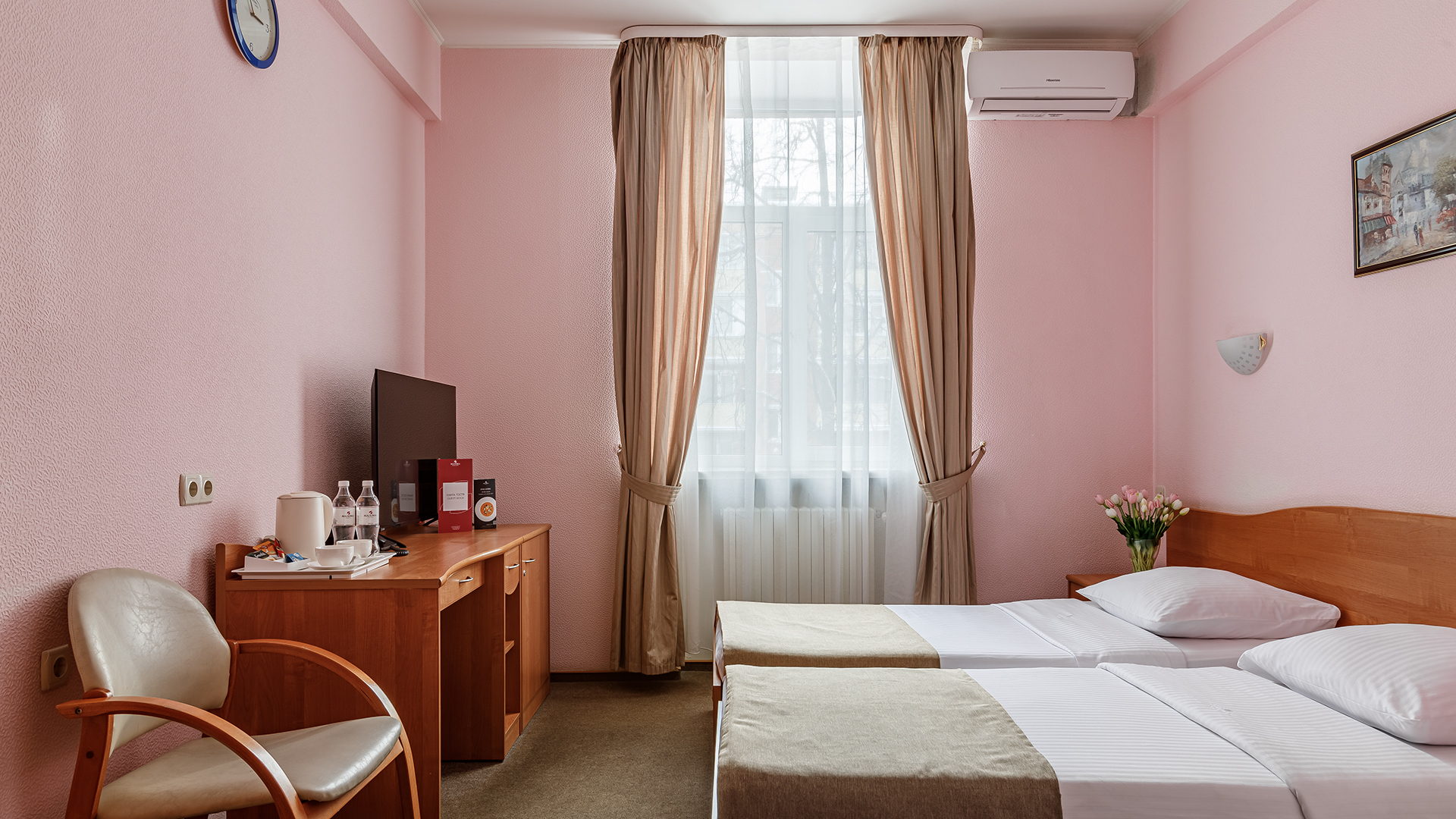 кондиционер, сейф, телевизор ЖК, телефон, холодильник, чайный набор посуды, электрочайник