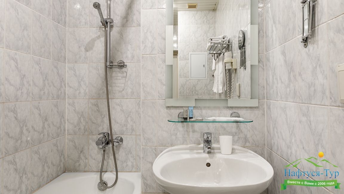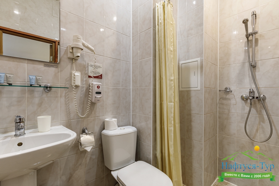 с душем, туалетные принадлежности, фен