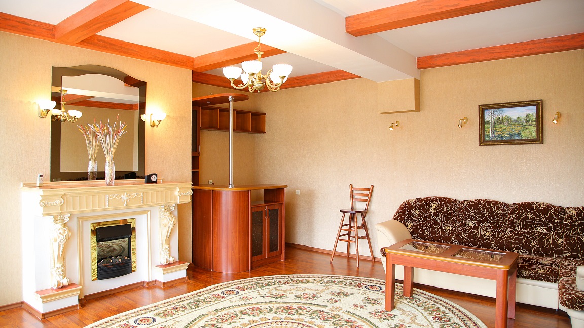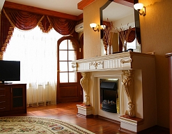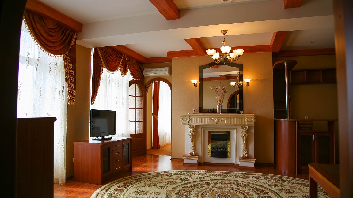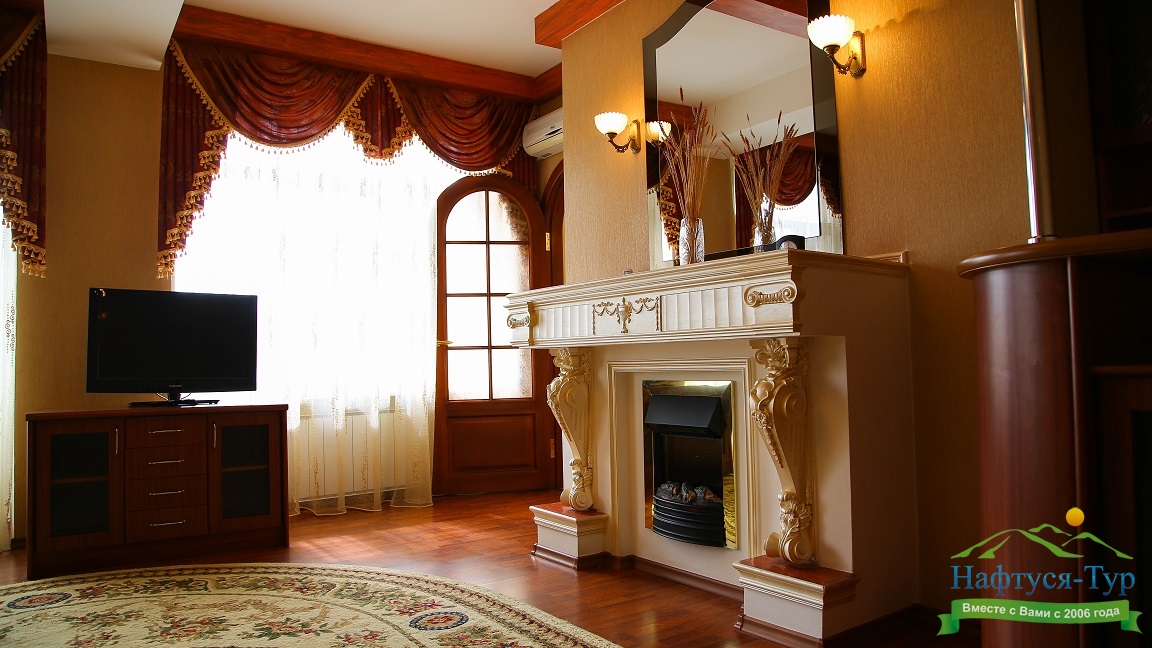 камин, кондиционер, микроволновая печь, набор посуды, телевизор, телефон, холодильник, чайный набор посуды, электрочайник