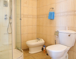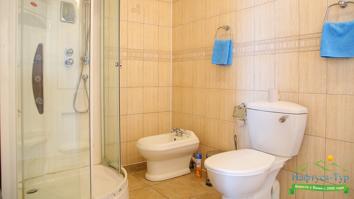 биде, с душевой кабиной, туалетные принадлежности, фен