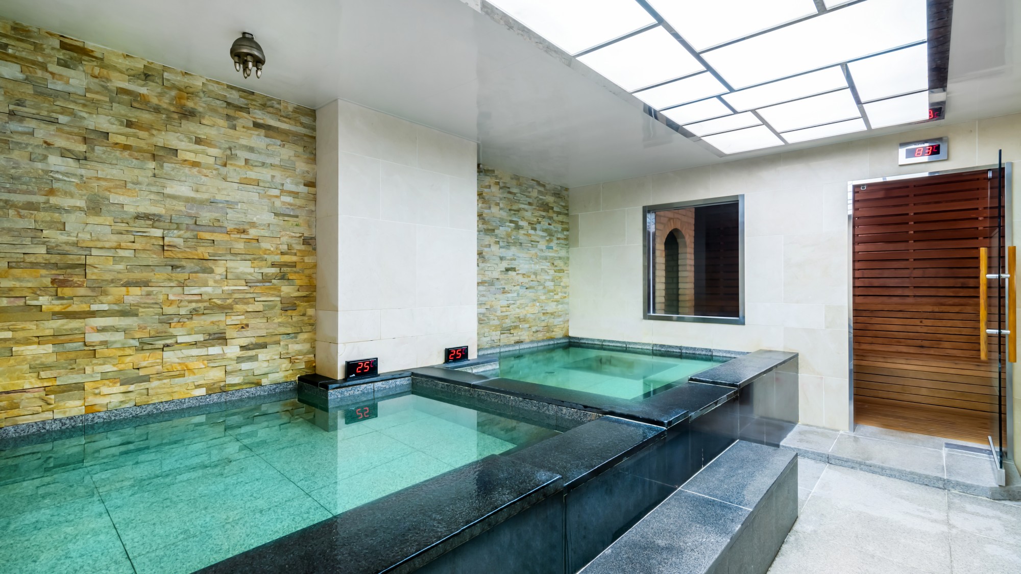 с джакузи, тапочки, туалетные принадлежности, фен, халат