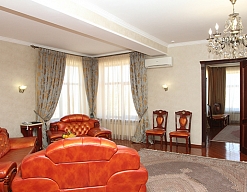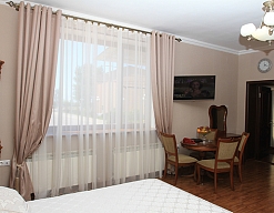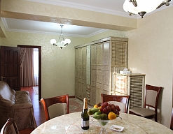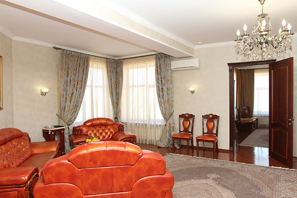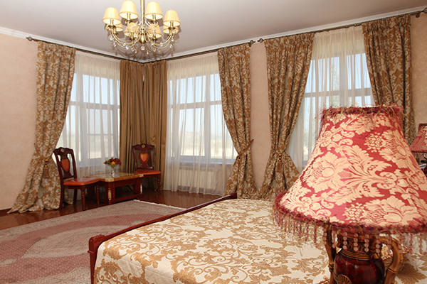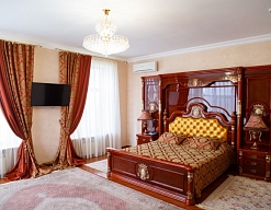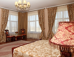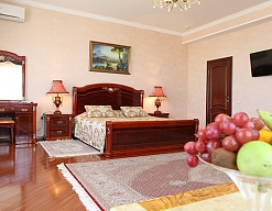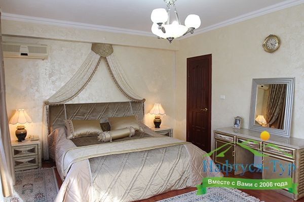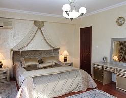 гардеробная, диван, зеркало, кресла, кровать двуспальная, прикроватные тумбочки, стол, столик журнальный, столик туалетный, стулья, шкаф, шкаф для посуды
