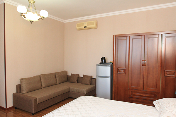 кондиционер, сейф, телевизор ЖК, холодильник, чайный набор посуды, электрочайник