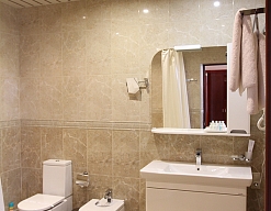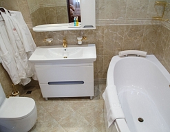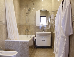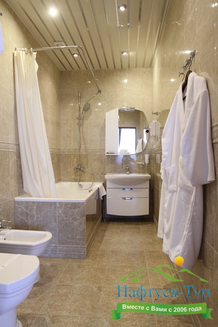 биде, с ванной, тапочки, туалетные принадлежности, халат