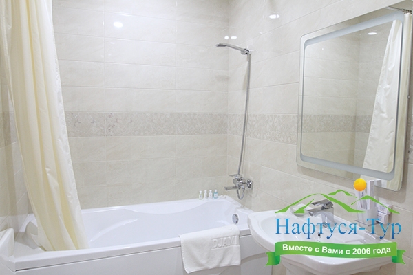 с ванной или душевой кабиной, туалетные принадлежности