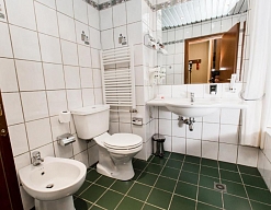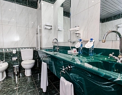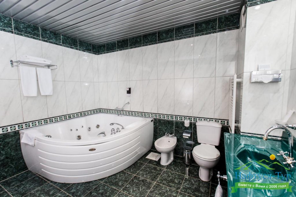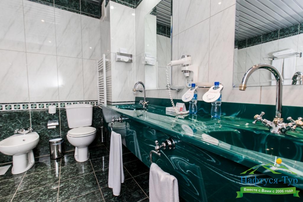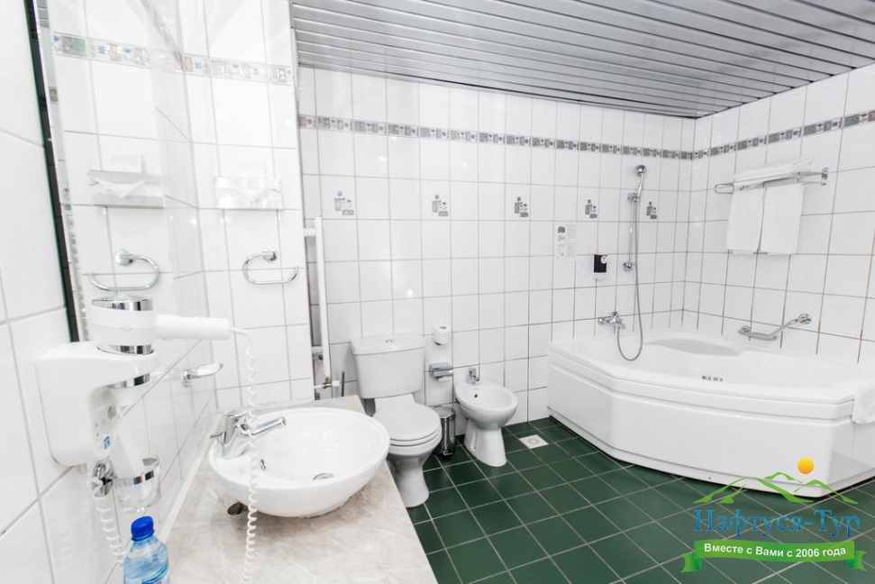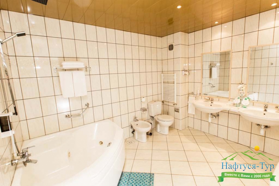 2 санузла, с ванной, тапочки, туалетные принадлежности, фен, халат