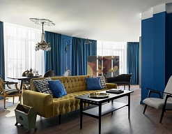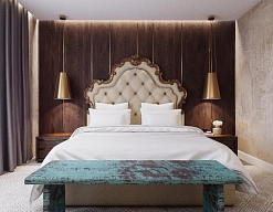 кровать двуспальная, набор мягкой мебели, прикроватные тумбочки, стол, столик журнальный, стулья, шкаф