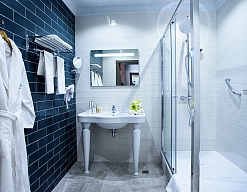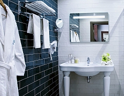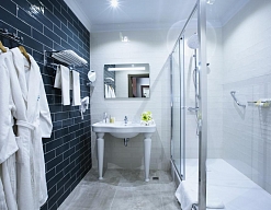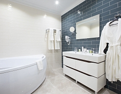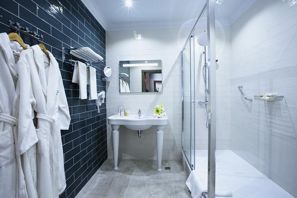 · Отель новый, очень качественные материалы отделки, мебель, сантехника. Номер удобный, просторный (мы брали обычный на двоих с двуспальной кроватью). Постельное белье, матрас, подушки просто на высоте.