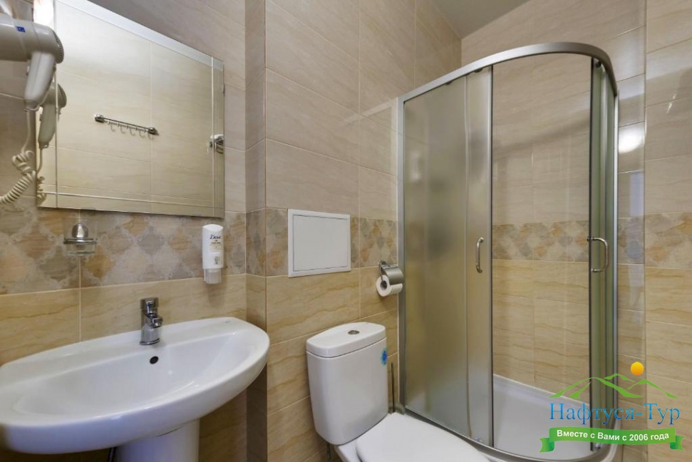 с душем, туалетные принадлежности, фен