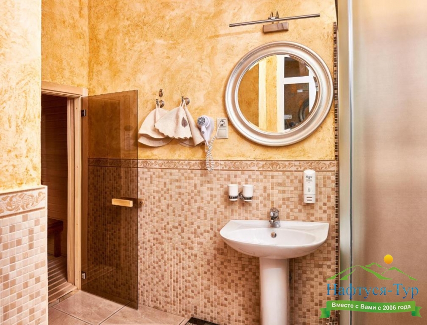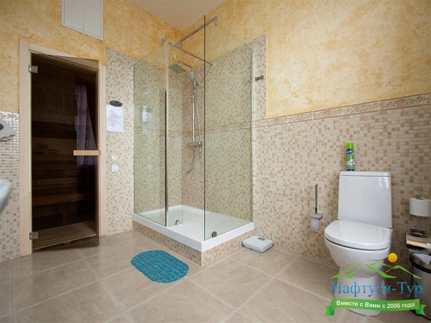 сауна, с душевой кабиной, тапочки, туалетные принадлежности, фен, халат