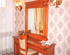 вешалка, зеркало, кровать двуспальная, прикроватные тумбочки, стол, стул, шкаф