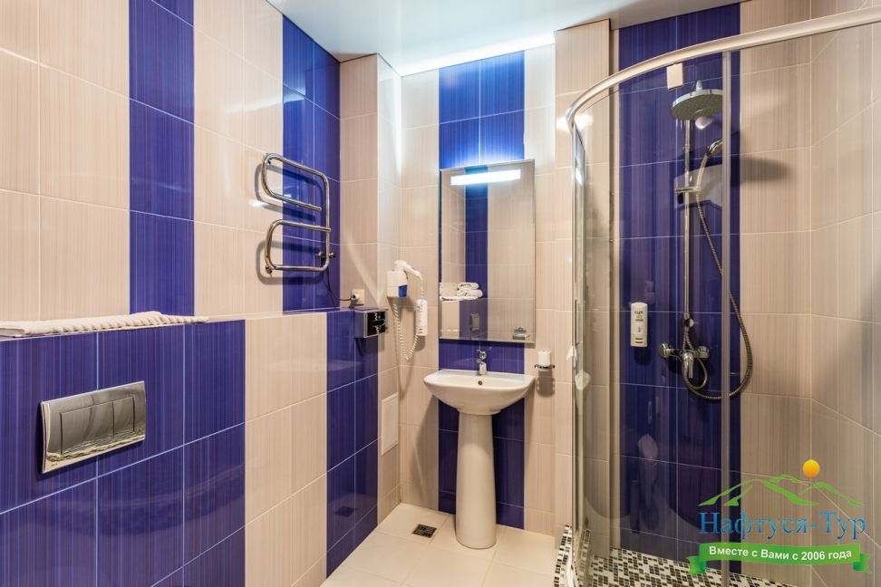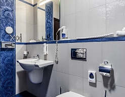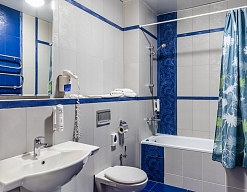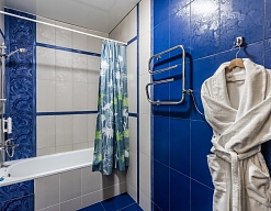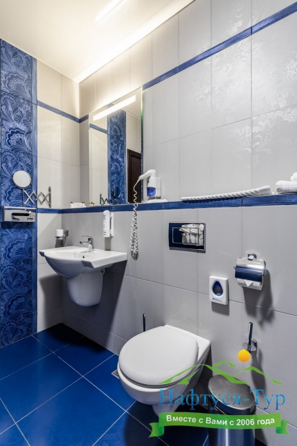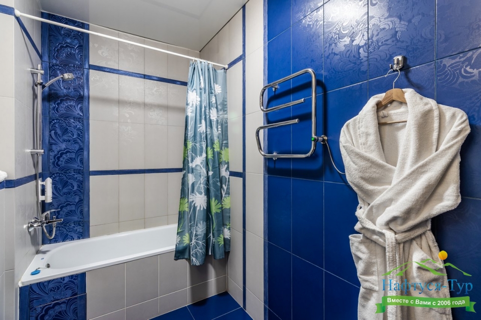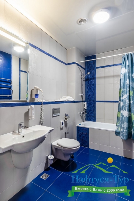 биде, с ванной, тапочки, туалетные принадлежности, фен, халат