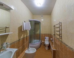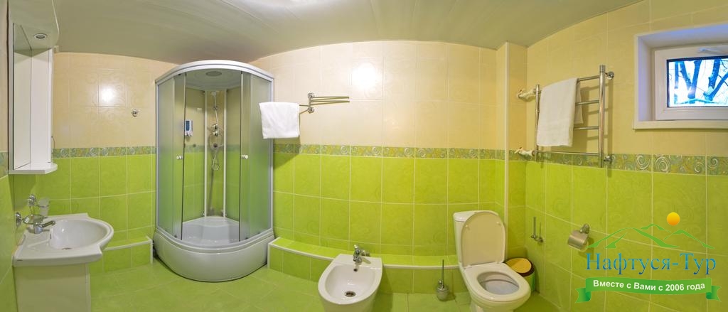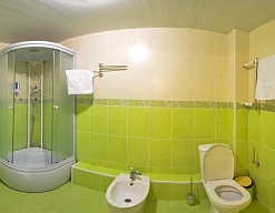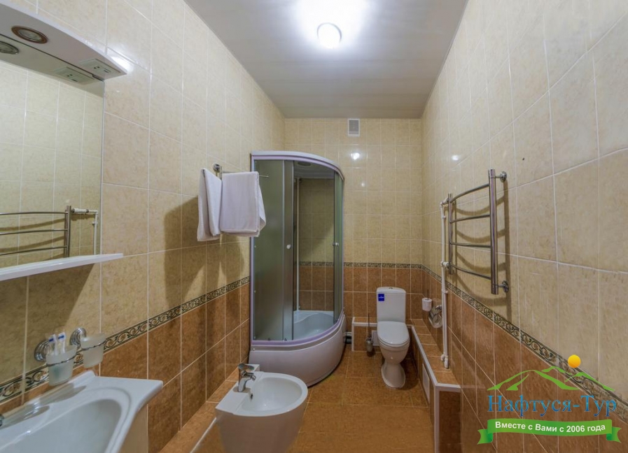 биде, с душевой кабиной, туалетные принадлежности, фен