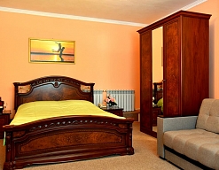 диван, кровать двуспальная, прикроватные тумбочки, стол, стулья, шкаф
