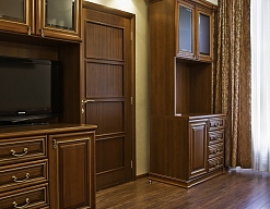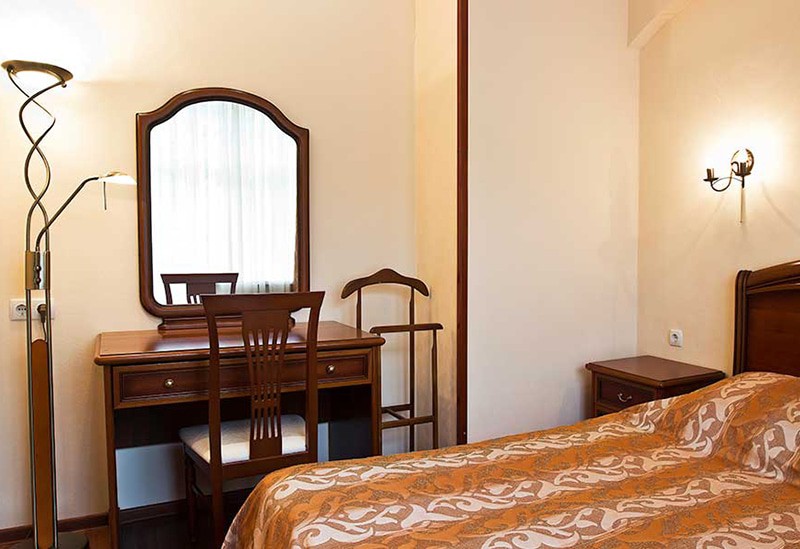 диван, зеркало, кровати односпальные /одна двуспальная кровать, прикроватные тумбочки, стол, стулья, тумба, шкаф