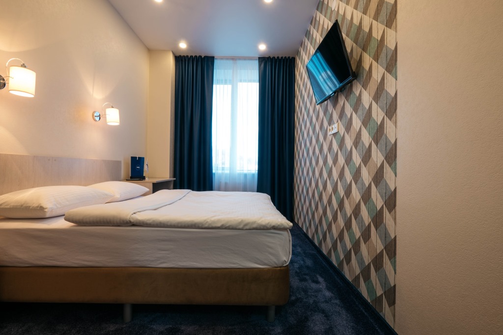 Здание отеля имеет оригинальную архитектуру и напоминает корабль, украшенный галеонной фигурой на носу. В отделке фасада используется много стекла, что придает зданию дополнительную легкость. Для размещения предусмотрено 38 номеров трех категорий. Во всех номерах – ТВ, холодильник, телефон, фен. В номерах повышенной комфортности – дополнительно халаты и тапочки.