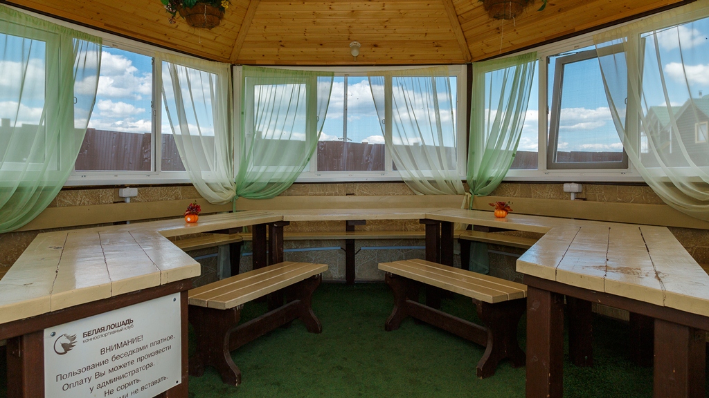Загородный клуб «Белая лошадь» расположен в экологически благоприятном месте, в окружении живописных пейзажей, и при этом в незначительной удаленности от областной столицы. На территории клуба площадью 50 га находятся конно-спортивный клуб, деловой и развлекательный центр, современный гостиничный комплекс и уютный ресторан.