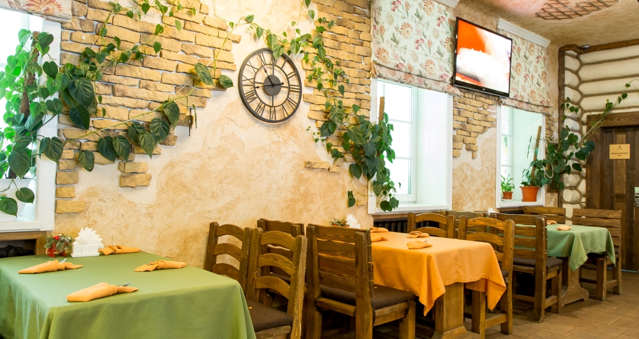 Ресторанный комплекс впечатлит даже гурманов. Тематика залов (клубный, французский, семейный, летний и банкет-холл), фермерские продукты местного производства, авторское меню и разнообразная винная карта не оставят никого равнодушным. Завтрак отдыхающим предоставляется в основном «Клубном» зале.