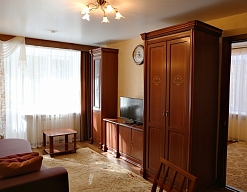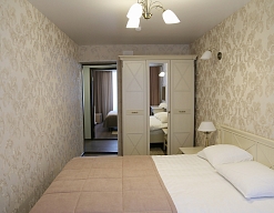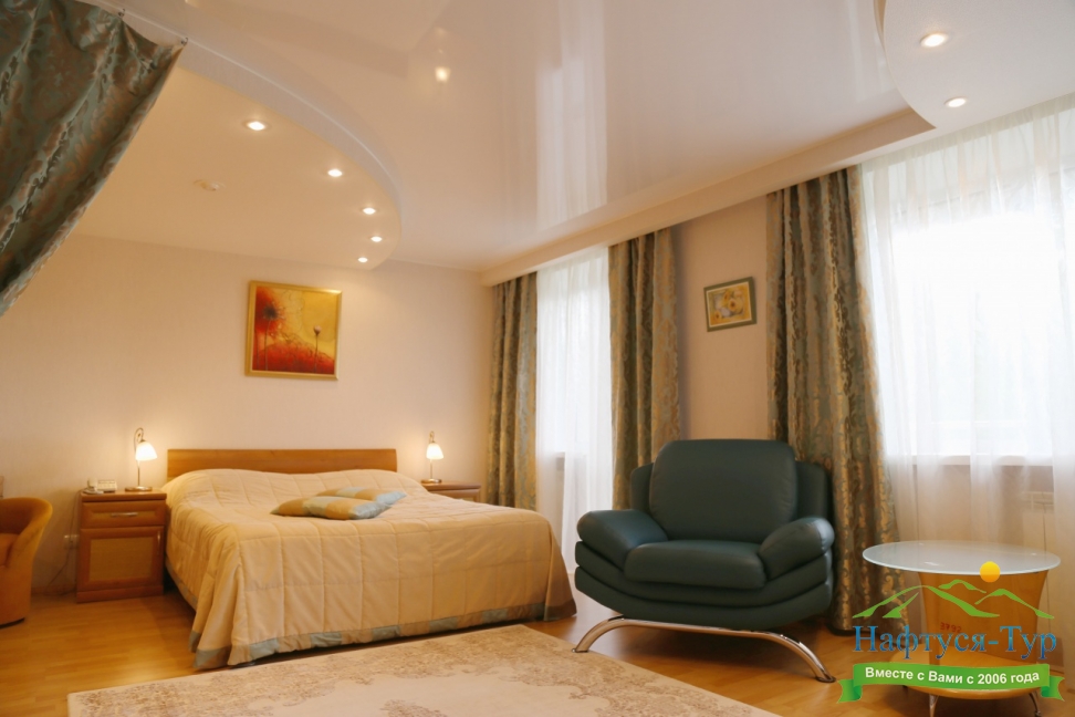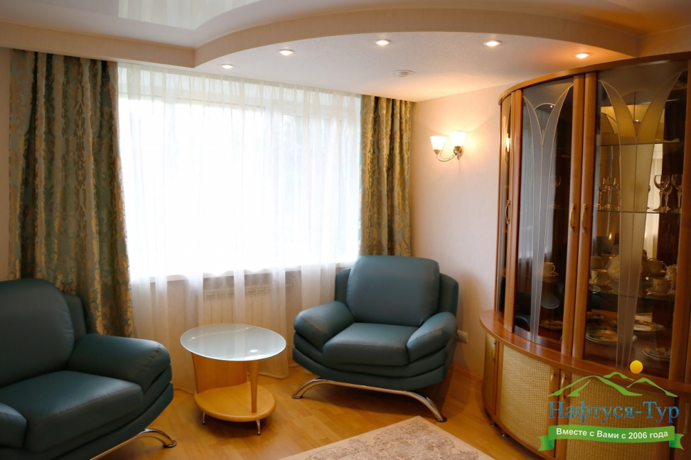 кресла, кровать двуспальная, прикроватные тумбочки, столик журнальный, шкаф
